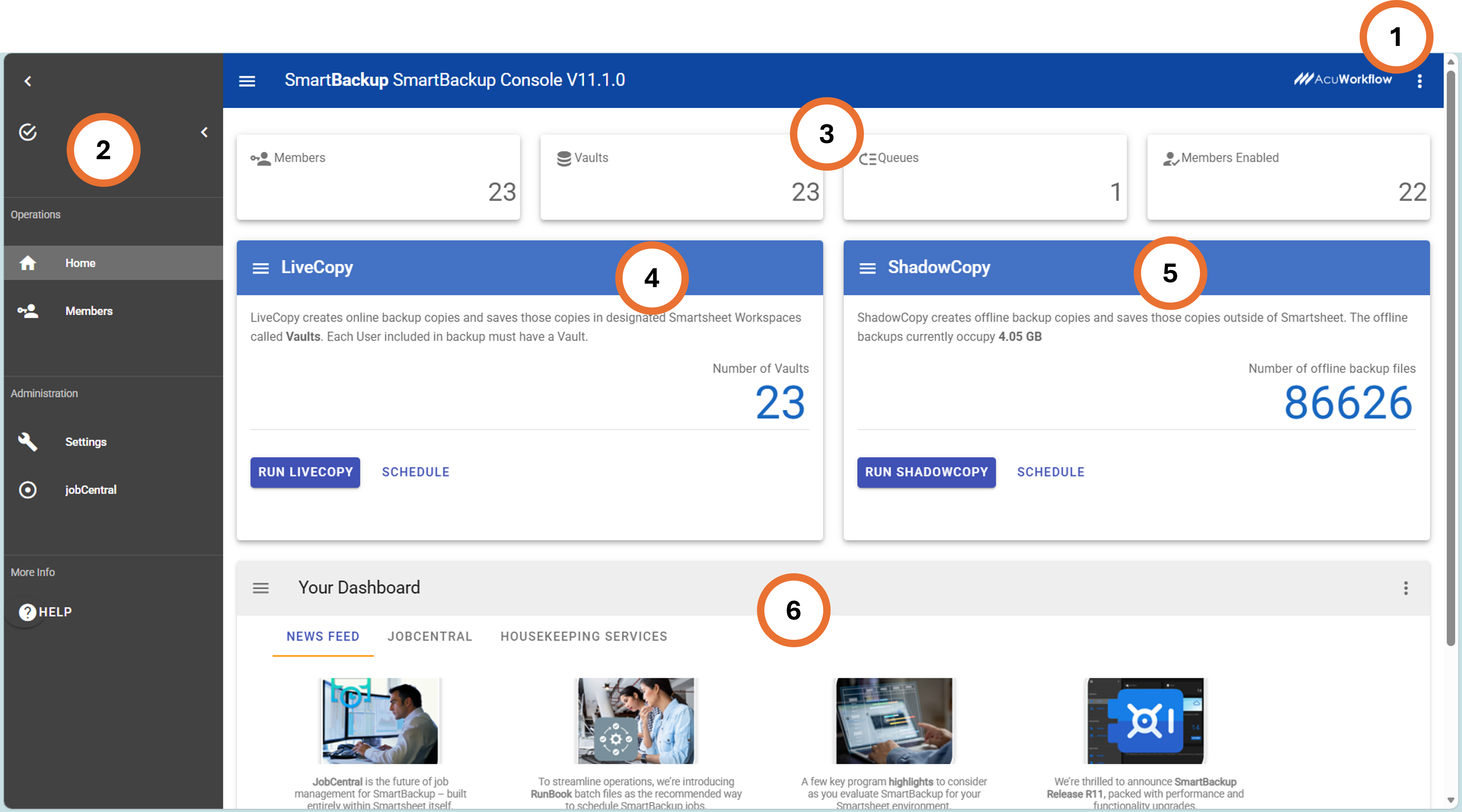 - SmartBackup News - The News section is where you can find the latest news about SmartBackup, including new release information. This section can also be used to find JobCentral information and Housekeeping Services schedules.