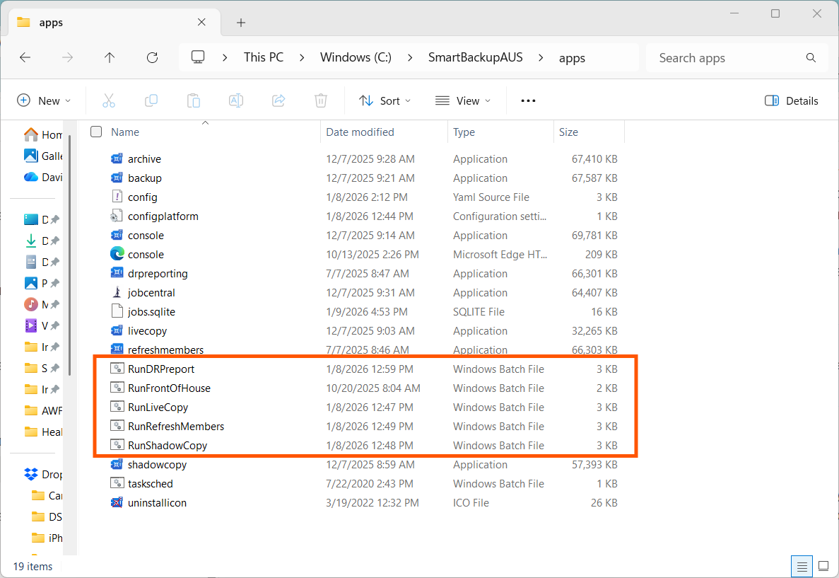 The following is a screenshot of a typical SmartBackup\apps installation folder as an example.