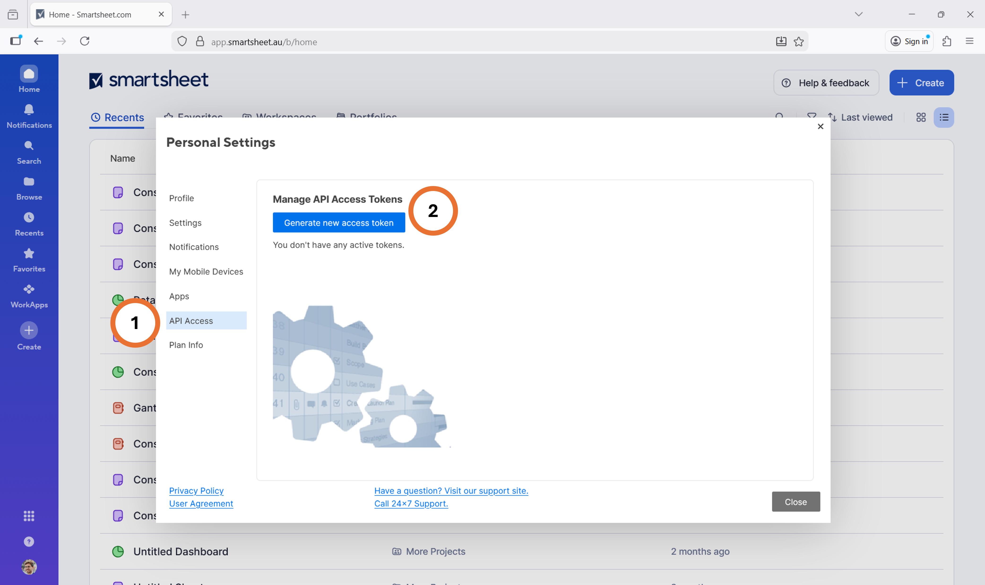 This section describes generating a SysAdmin API token for the integration of Smartsheet into SmartBackup.